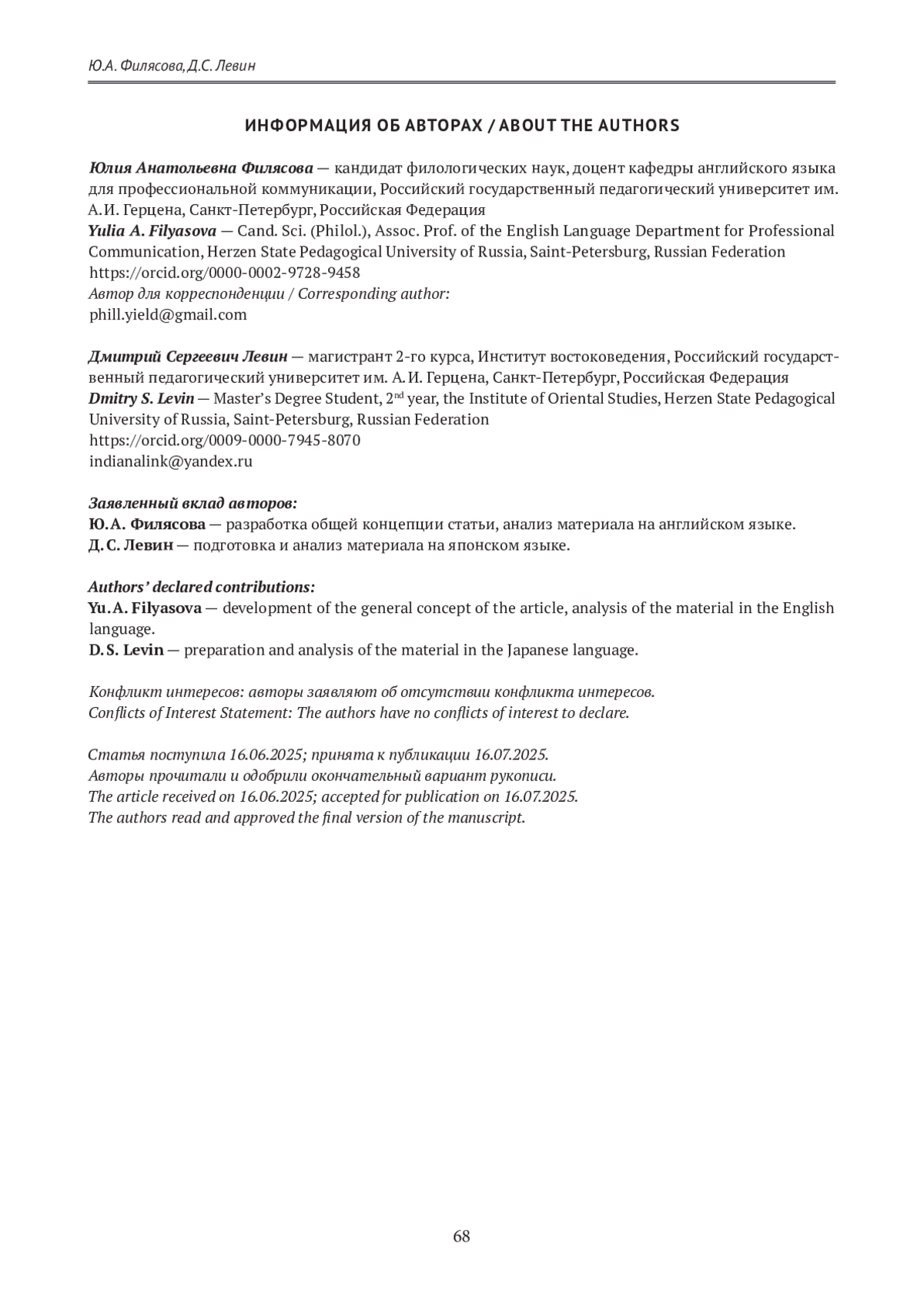20. Лихолетова О. Р. Концепт «КИМОНО» в образных единицах японского языка. Филологические науки в МГИМО. 2023;4(9):83-95. https://doi.org/10.24833/2410-2423-2023-4-37-83-95