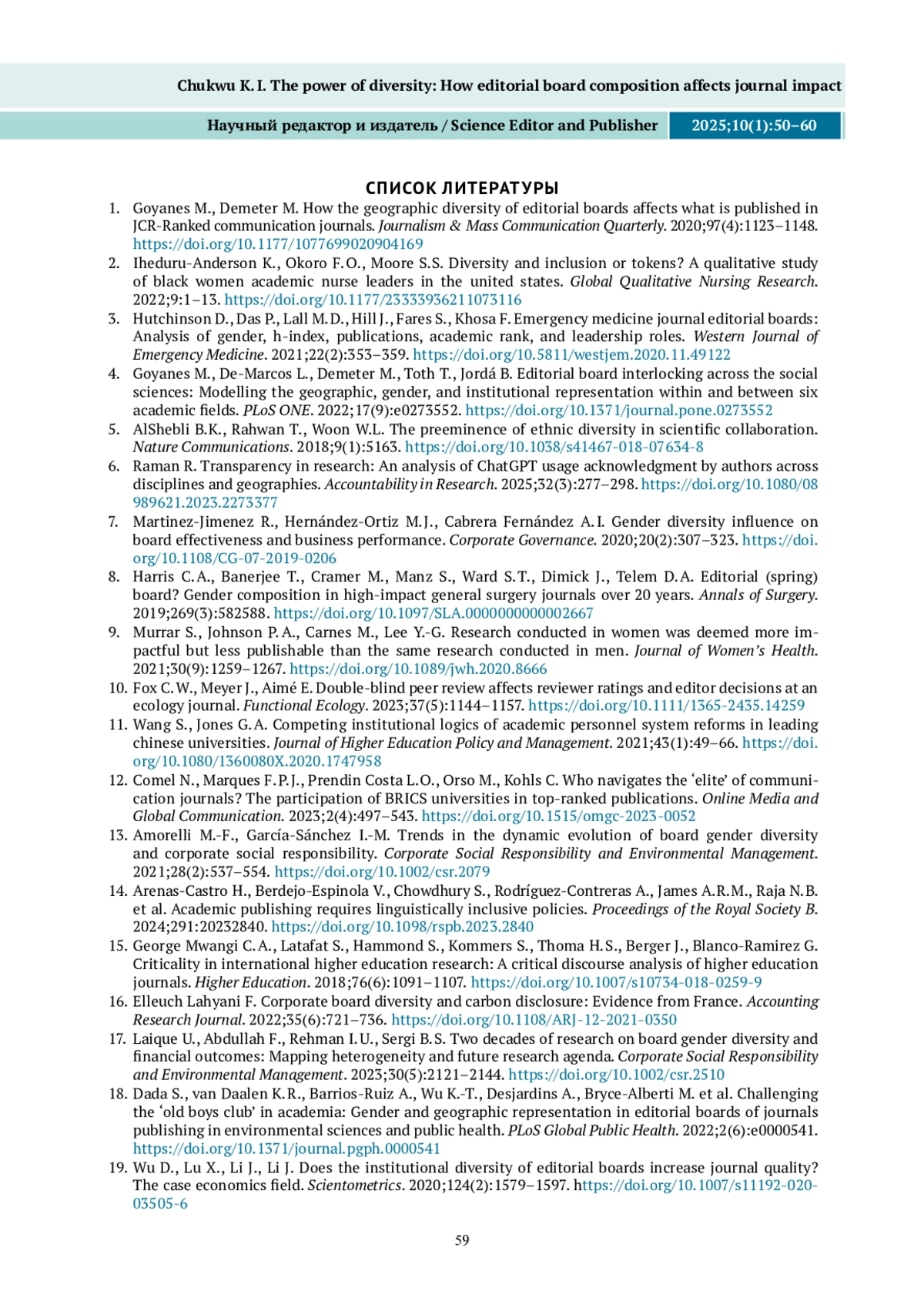 19. Wu D., Lu X., Li J., Li J. Does the institutional diversity of editorial boards increase journal quality? The case economics field. Scientometrics. 2020;124(2):1579-1597. DOI: 10.1007/s11192-020-03505-6