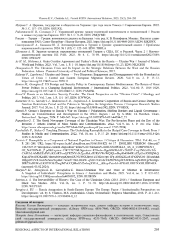 Статья: УКРАИНСКИЙ ФАКТОР В ГРЕКО-РОССИЙСКИХ ОТНОШЕНИЯХ: ПОТЕРЯННЫЕ ПЕРСПЕКТИВЫ И СТАГНАЦИЯ (2025)