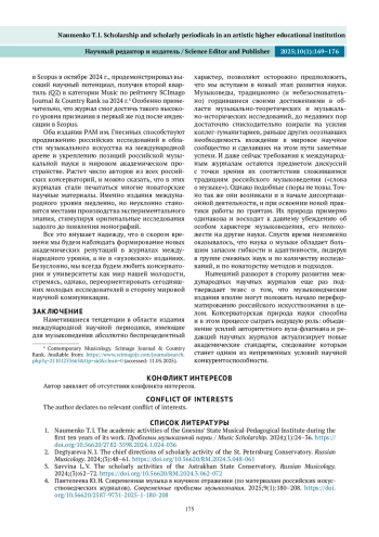 2. Degtyareva N. I. The chief directions of scholarly activity of the St. Petersburg Conservatory.Russian Musicology. 2024;(3):48-61. DOI: 10.56620/RM.2024.3.048-061