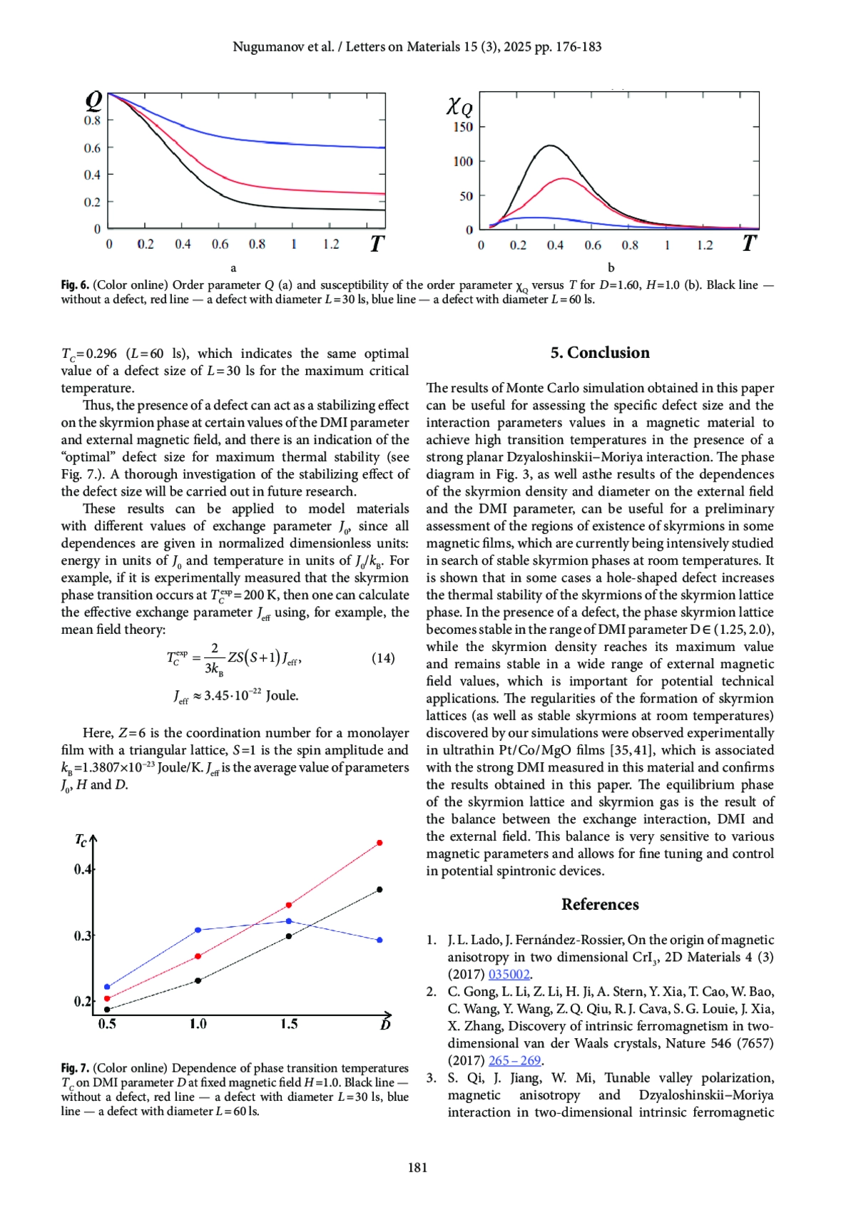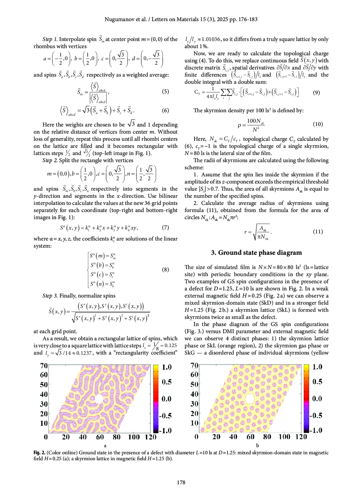Ключевые фразы: structural defect, skyrmion, skyrmion lattice, monte carlo simulation, dzyaloshinskii−moriya interaction