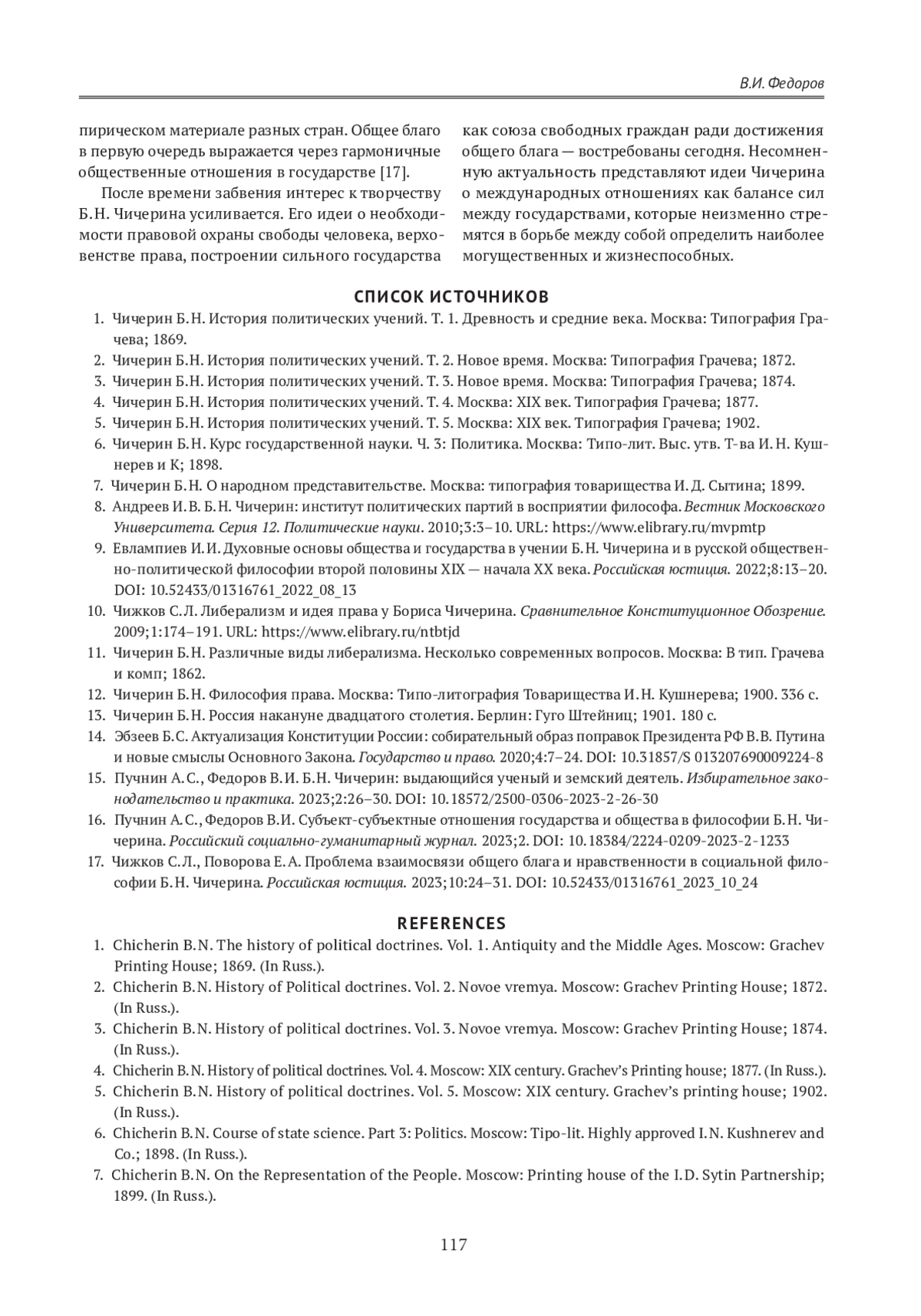 16. Пучнин А. С., Федоров В. И. Субъект-субъектные отношения государства и общества в философии Б. Н. Чичерина. Российский социально-гуманитарный журнал. 2023;2. https://doi.org/10.18384/2224-0209-2023-2-1233
