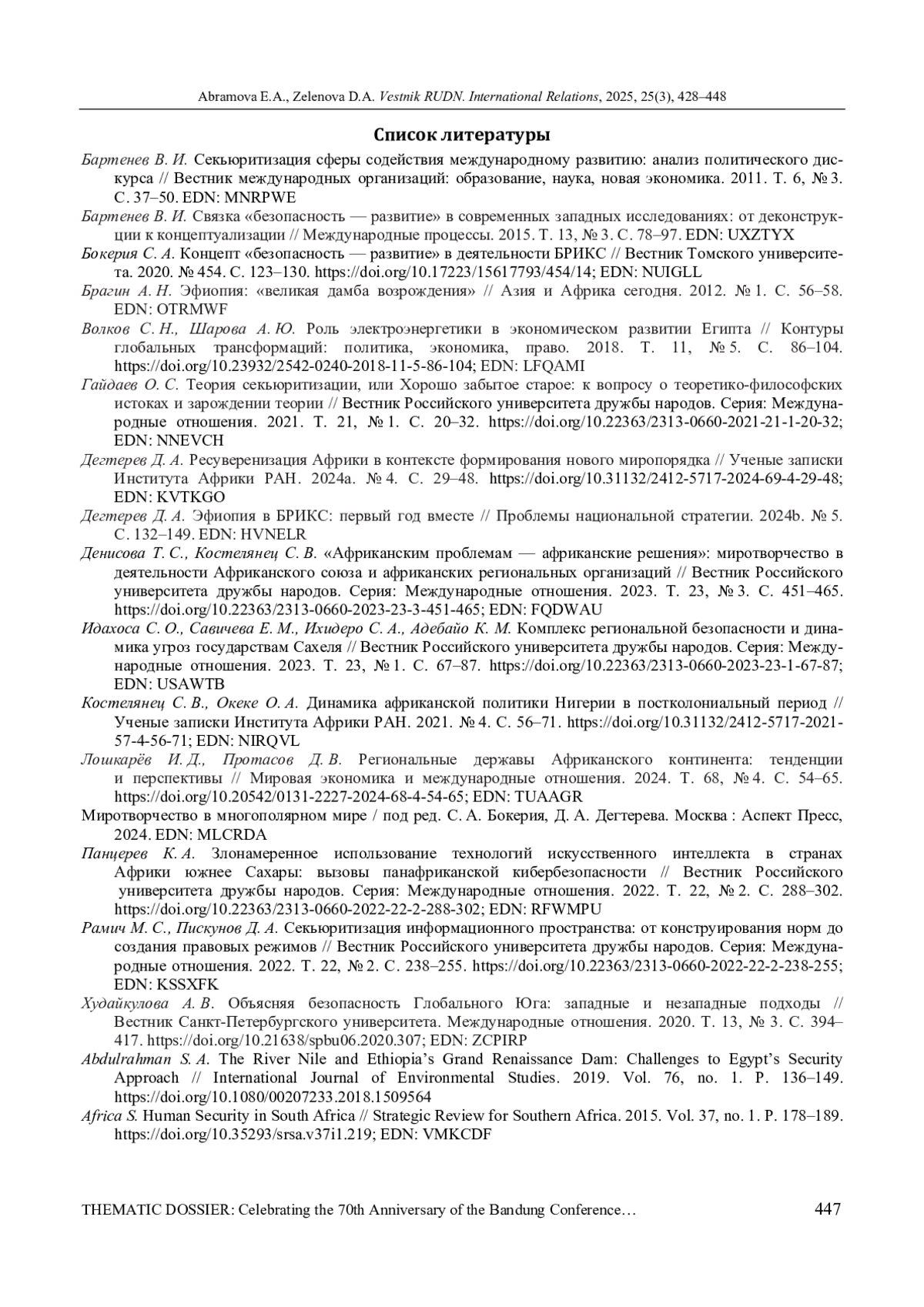 8. Дегтерев Д. А. Эфиопия в БРИКС: первый год вместе // Проблемы национальной стратегии. 2024b. № 5. С. 132-149. EDN: HVNELR