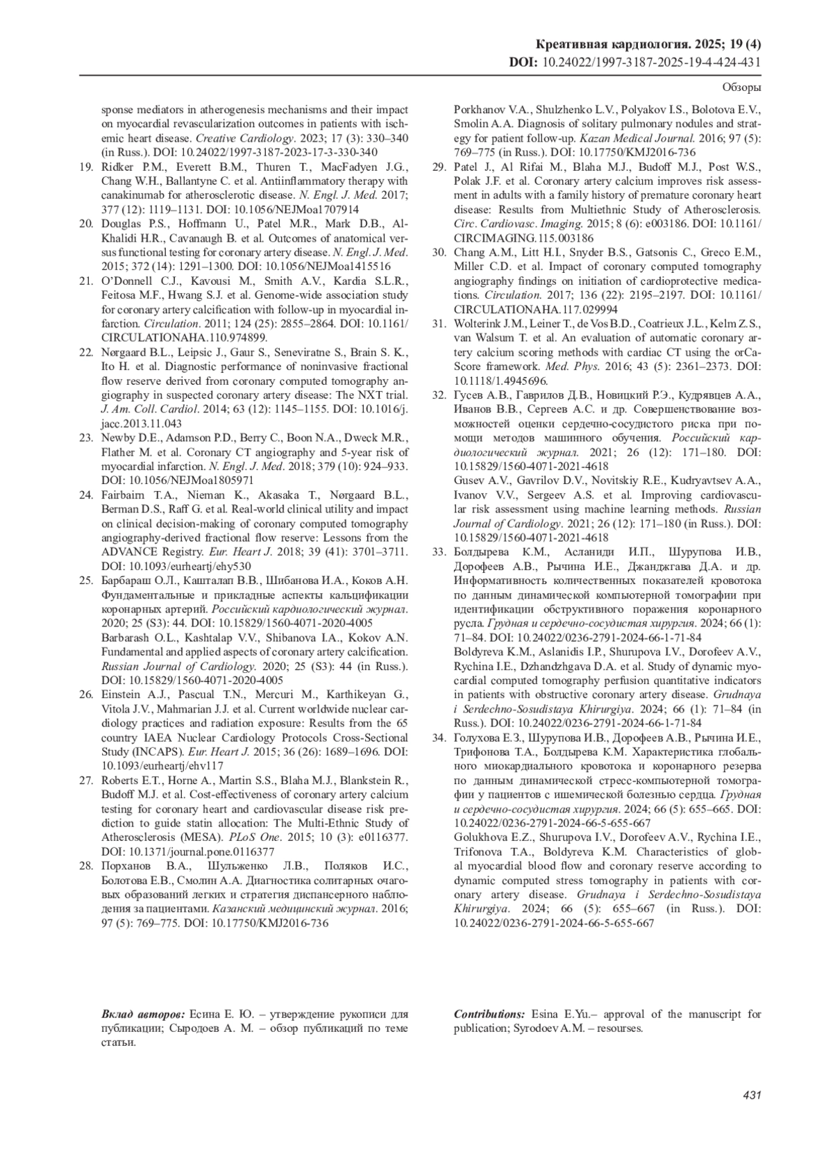 33. Болдырева К.М., Асланиди И.П., Шурупова И.В., Дорофеев А.В., Рычина И.Е., Джанджгава Д.А. и др. Информативность количественных показателей кровотока по данным динамической компьютерной томографии при идентификации обструктивного поражения коронарного русла. Грудная и сердечно-сосудистая хирургия. 2024; 66 (1): 71-84. DOI: 10.24022/0236-2791-2024-66-1-71-84