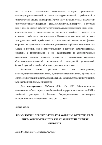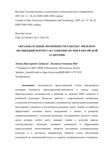 Статья: ОБРАЗОВАТЕЛЬНЫЕ ВОЗМОЖНОСТИ РАБОТЫ С ФИЛЬМОМ «ВОЛШЕБНЫЙ ПОРТРЕТ» НА ЗАНЯТИЯХ ПО РКИ В КИТАЙСКОЙ АУДИТОРИИ (2025)