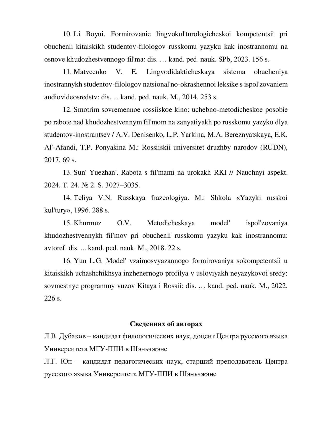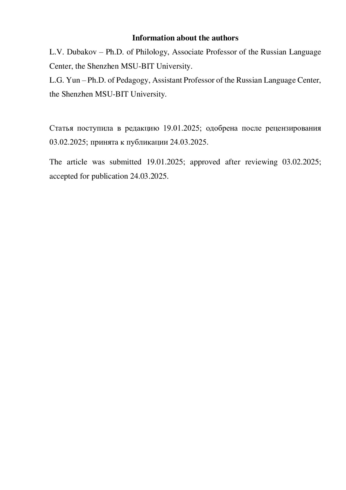 ДУБАКОВ Л. В., ЮН Л. Г. ОБРАЗОВАТЕЛЬНЫЕ ВОЗМОЖНОСТИ РАБОТЫ С ФИЛЬМОМ «ВОЛШЕБНЫЙ ПОРТРЕТ» НА ЗАНЯТИЯХ ПО РКИ В КИТАЙСКОЙ АУДИТОРИИ // ВЕСТНИК ГОСУДАРСТВЕННОГО ГУМАНИТАРНО-ТЕХНОЛОГИЧЕСКОГО УНИВЕРСИТЕТА. 2025. № 1