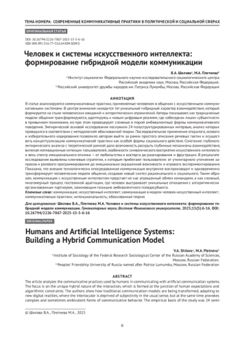 Статья: Человек и системы искусственного интеллекта: формирование гибридной модели коммуникации (2025)