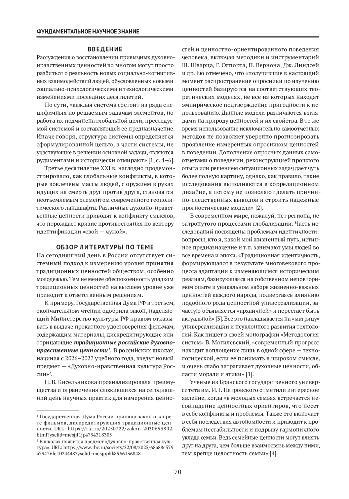 Ключевые фразы: духовные ценности, кризис смыслов, национальная идентичность, системный анализ, ЭТИЧЕСКИЕ НОРМЫ