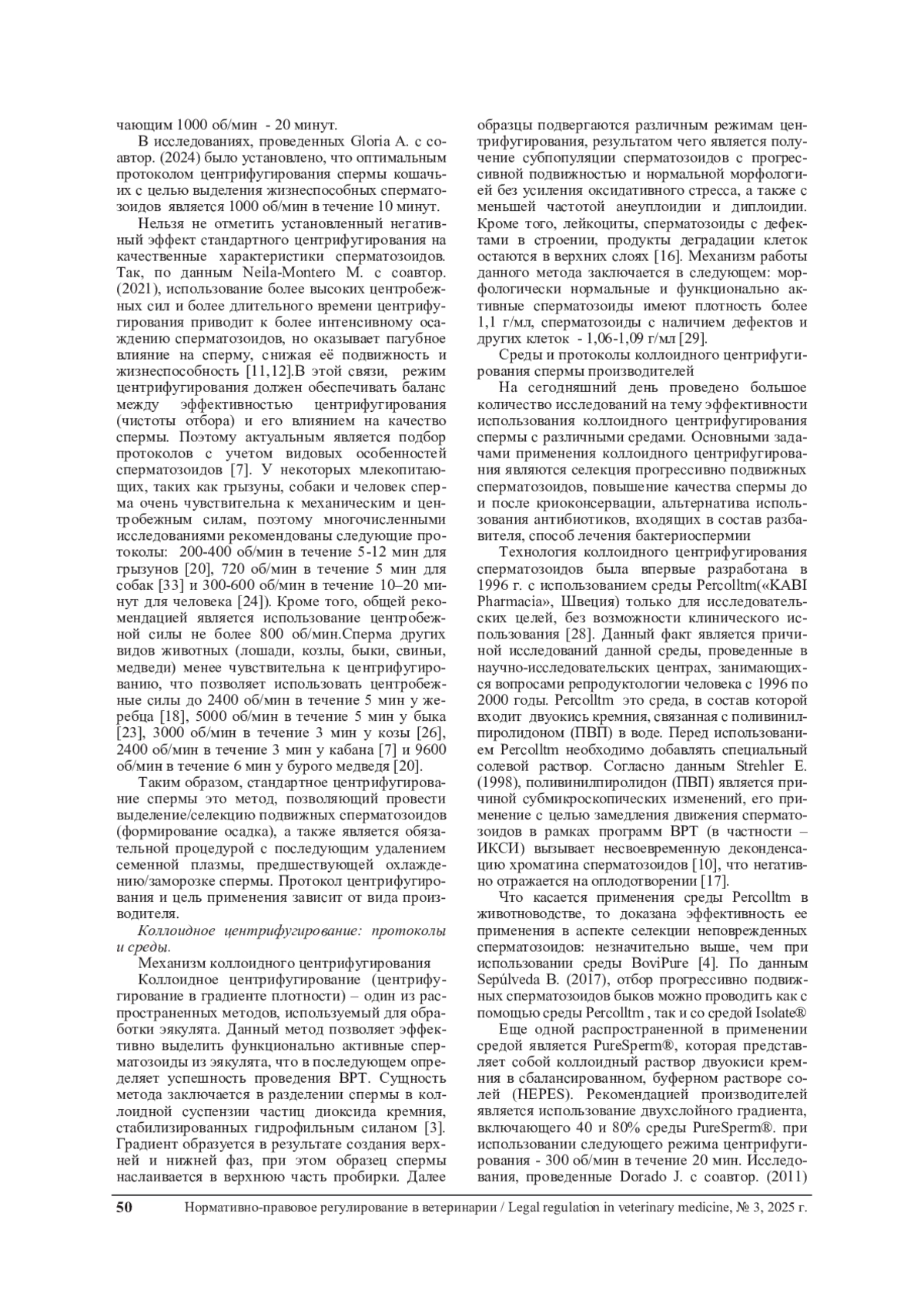 31. Sepùlveda B., Arias M.E., Aguila L., Zambrano F., Sanchez R., Felmer R. Gradient sperm selection for reproductive techniques in cattle: Is Isolate a suitable replacement for Percoll? Andrologia. 2018 Apr;50(3). Epub 2017 Nov 21. PMID: 29164653. DOI: 10.1111/and.12921 EDN: YDJCHB PMID: 29164653