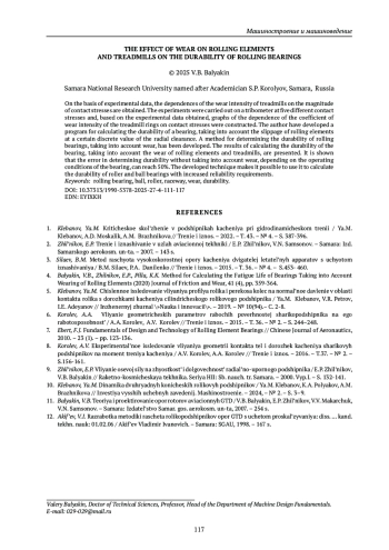 4. Balyakin, V.B., Zhilnikov, E.P., Pilla, K.K. Method for Calculating the Fatigue Life of Bearings Taking into Account Wearing of Rolling Elements (2020) Journal of Friction and Wear, 41 (4), pp. 359-364.