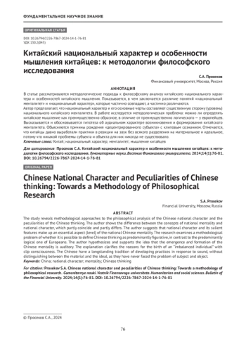 Статья: Китайский национальный характер и особенности мышления китайцев: к методологии философского исследования (2024)