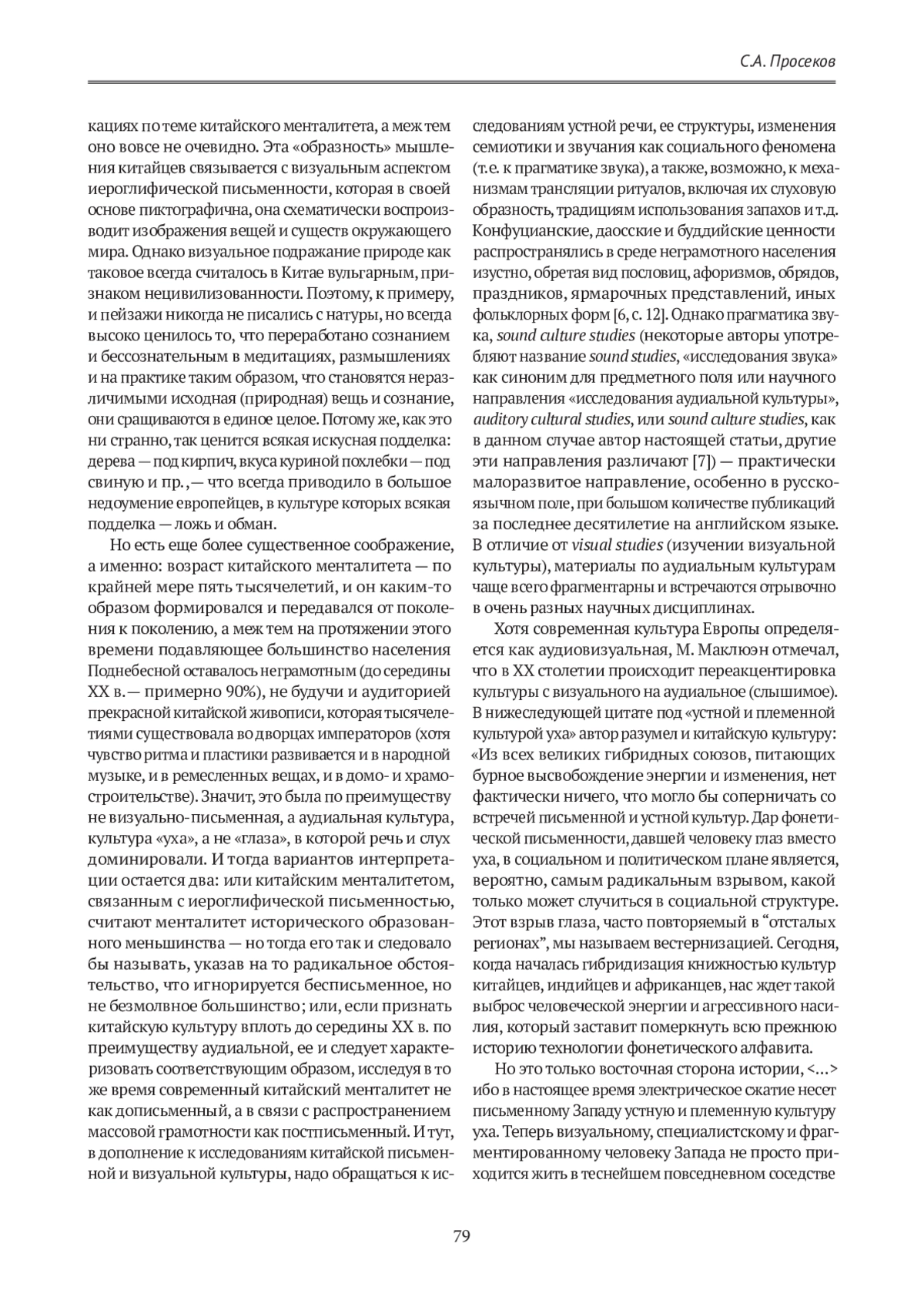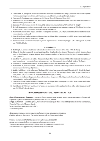 Автор предполагает, что национальный характер и его основные черты составляют существенную сторону (уровень) национального китайского менталитета. В работе исследуется методологическая проблема: можно ли определять китайское мышление как преимущественно образное, в отличие от преимущественно логического — у европейцев. Высказывается и обосновывается гипотеза об аудиальном характере возникновения и формирования китайского менталитета. Объясняются причины рождения «децентрированного субъекта» с клиповым сознанием. Отмечается, что китайцы давно выработали практики в реакции на звук без всякого разделения на материальное и идеальное, потому что никакой проблемы субъекта и объекта для них никогда не существовало.