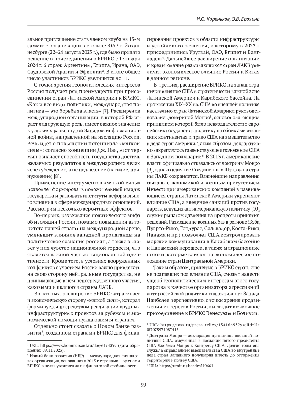 С точки зрения геополитических интересов Россия получает ряд преимуществ при присоединении стран Латинской Америки к БРИКС. «Как и все виды политики, международная политика — это борьба за власть» [7].