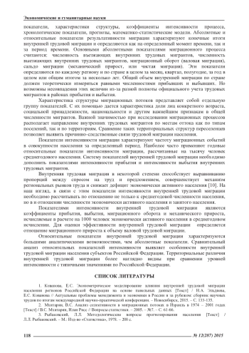 1. Кованова, Е.С. Эконометрическое моделирование влияния внутренней трудовой миграции населения регионов Российской Федерации на основе панельных данных [Текст] / Н.А. Эльдяева, Е.С. Кованова // Актуальные проблемы менеджмента и экономики в России и за рубежом: сборник научных трудов по итогам международной научно-практической конференции. - Новосибирск, 2015. - С. 133-135. EDN: TNQZJH