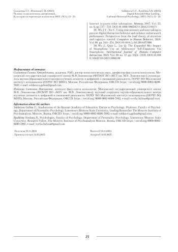39. Wu J., Qiao L., Liu Q. The Expanded Me: Impact of Smartphone Use on Adolescents’ Self-Expansion Via Smartphone // International Journal of Human-Computer Interaction. 2023. Vol. 39. № Р. 3324-3333.