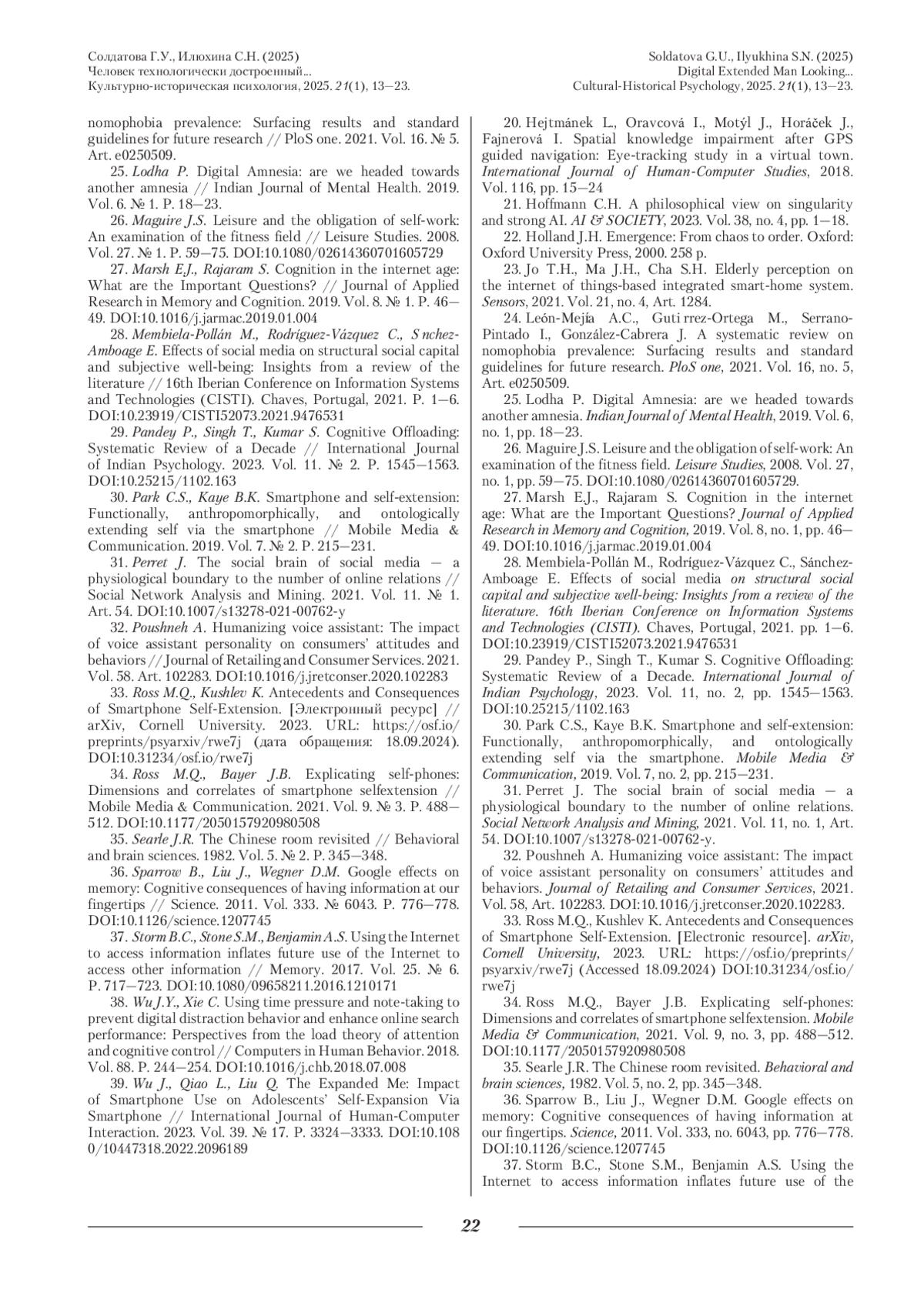 25. Lodha P. Digital Amnesia: are we headed towards another amnesia // Indian Journal of Mental Health. 2019. Vol. 6. № Р. 18-23.