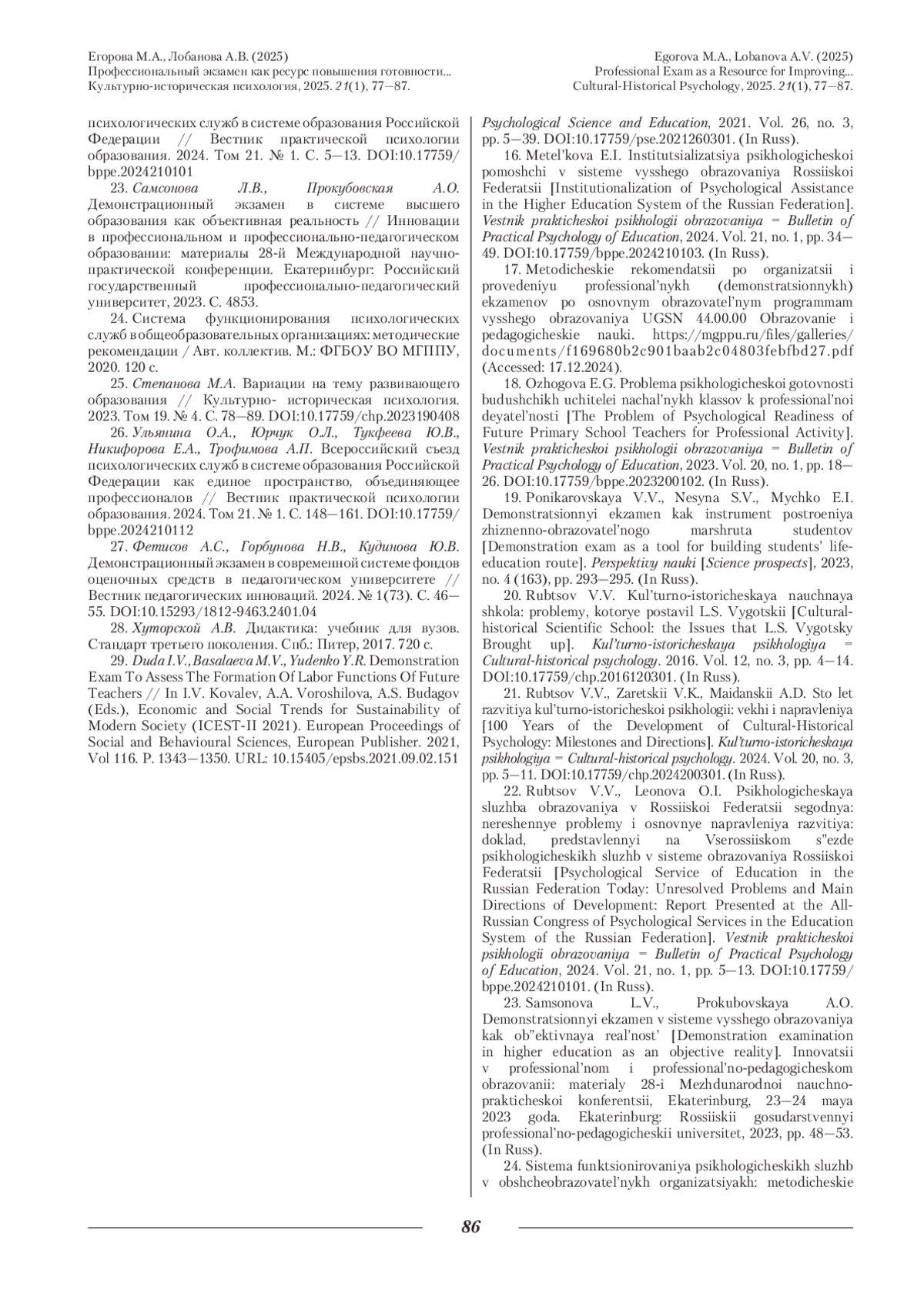 23. Самсонова Л.В., Прокубовская А.О. Демонстрационный экзамен в системе высшего образования как объективная реальность // Инновации в профессиональном и профессионально-педагогическом образовании: материалы 28-й Международной научно-практической конференции. Екатеринбург: Российский государственный профессионально-педагогический университет, 2023. С. 4853.