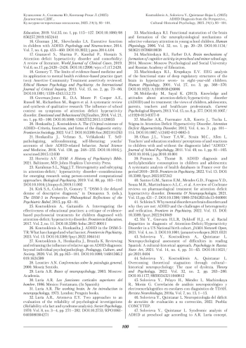 16. Glozman J.M., Shevchenko I.A. Executive function in children with ADHD. Psychology and Neuroscience, 2014. Vol.7, no.4, pp. 453-460. DOI: 10.3922/j.psns.2014.4.04 EDN: UFNVPP