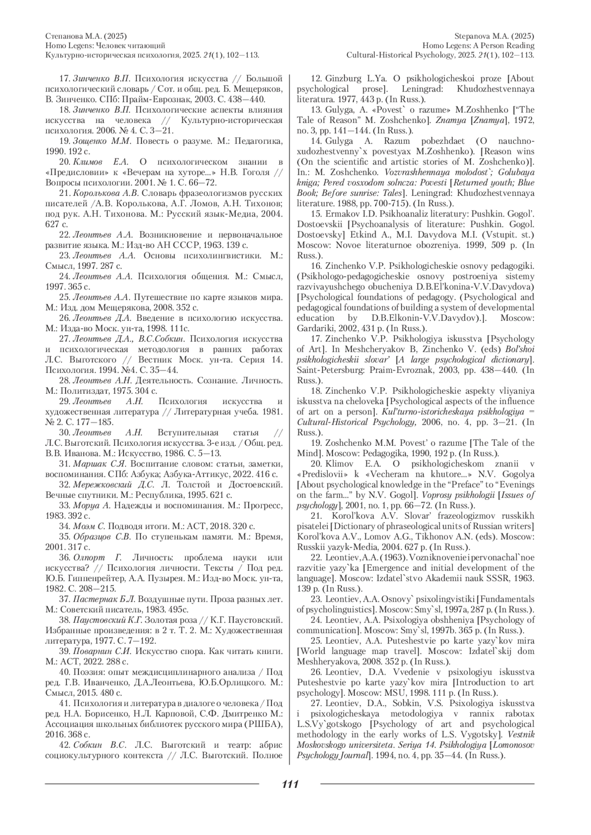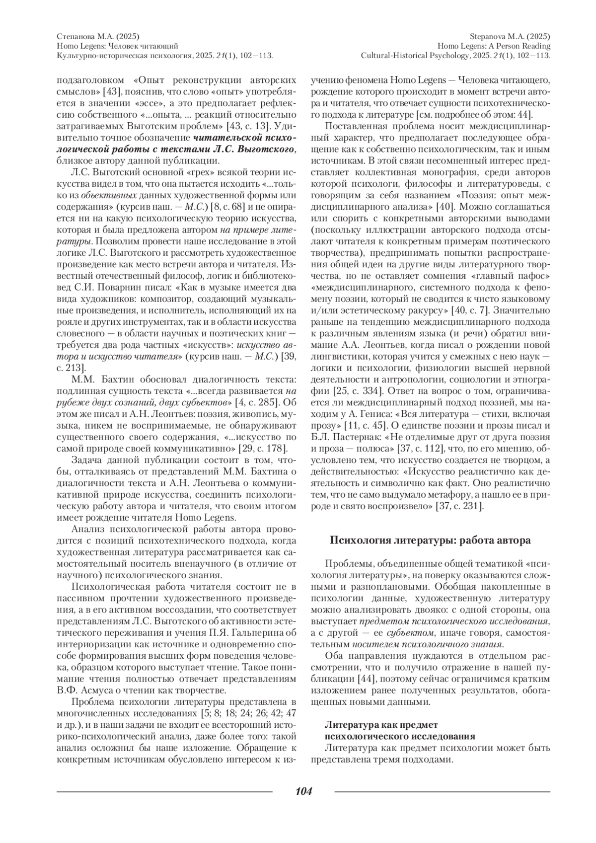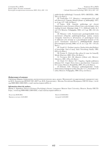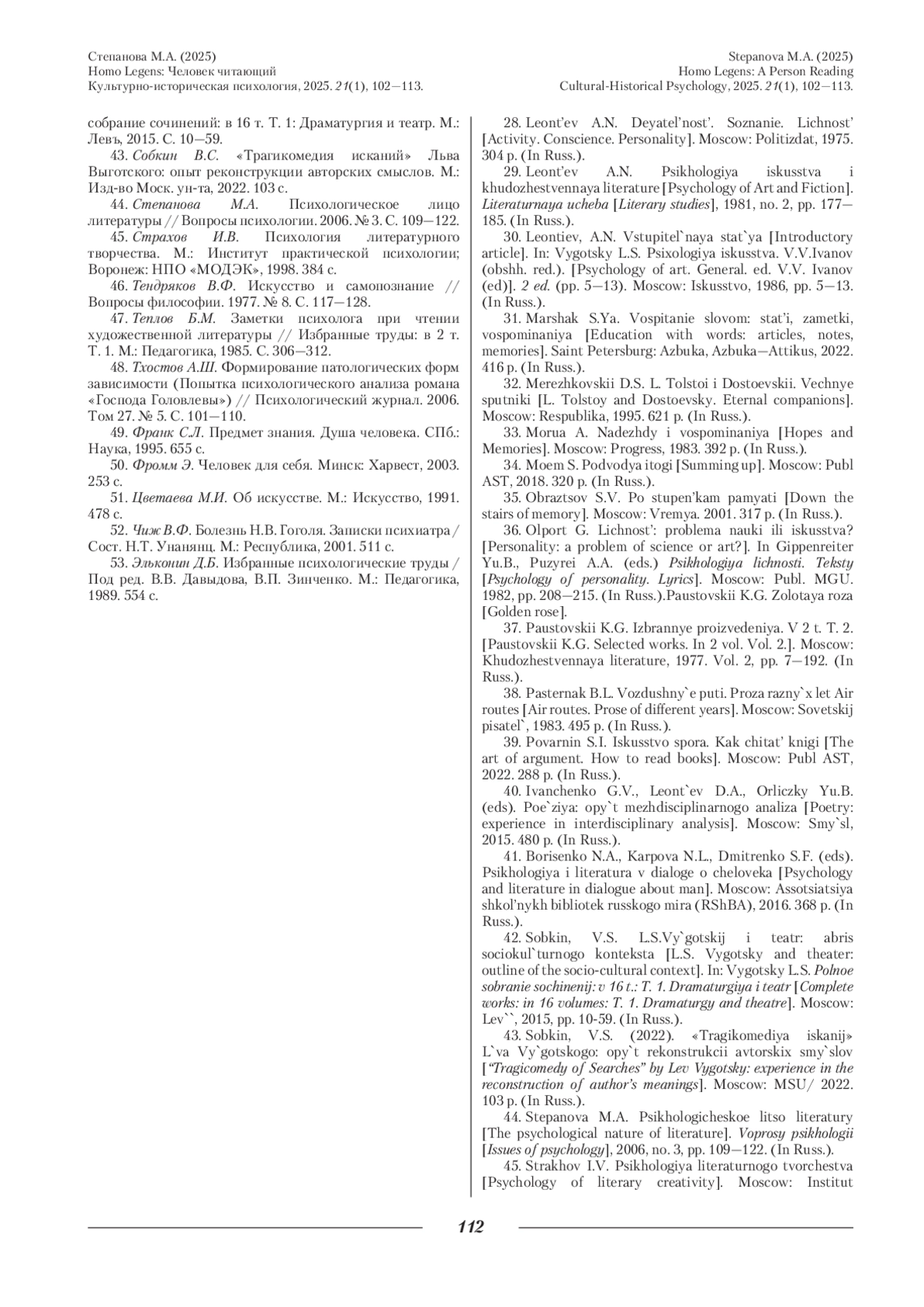 44. Степанова М.А. Психологическое лицо литературы // Вопросы психологии. 2006. № 3. С. 109-122.
