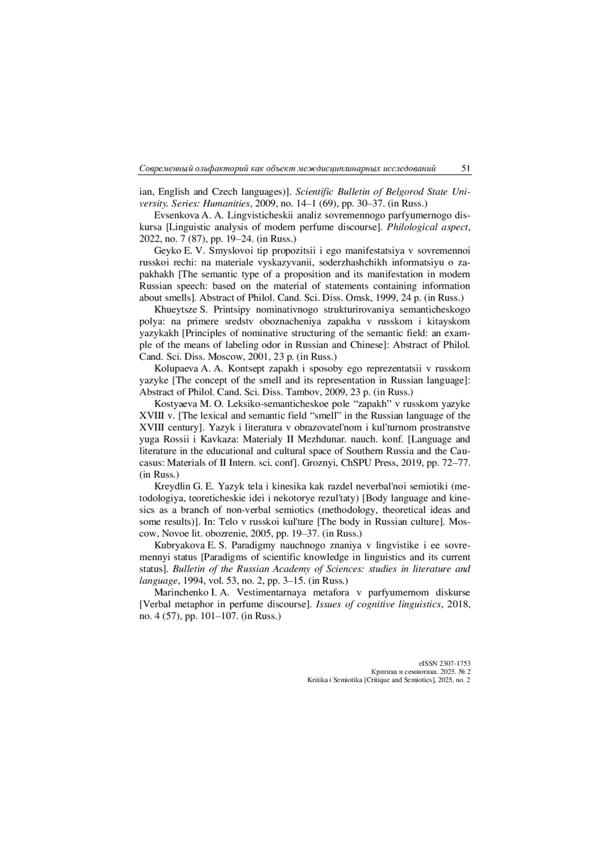 2. Басалаева Е. Г. Языковая репрезентация запаха в парфюмерном интернет-дискурсе // Вестник Том. гос. ун-та. 2013. № 375. С. 16-20.