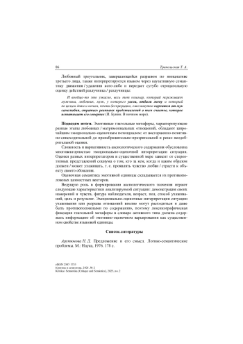 Глаголы движения в метафорических эмотивных значениях - это в существенной мере специфический способ языкового представления эмоционального состояния и эмоционального отношения любви для русской картины мира.