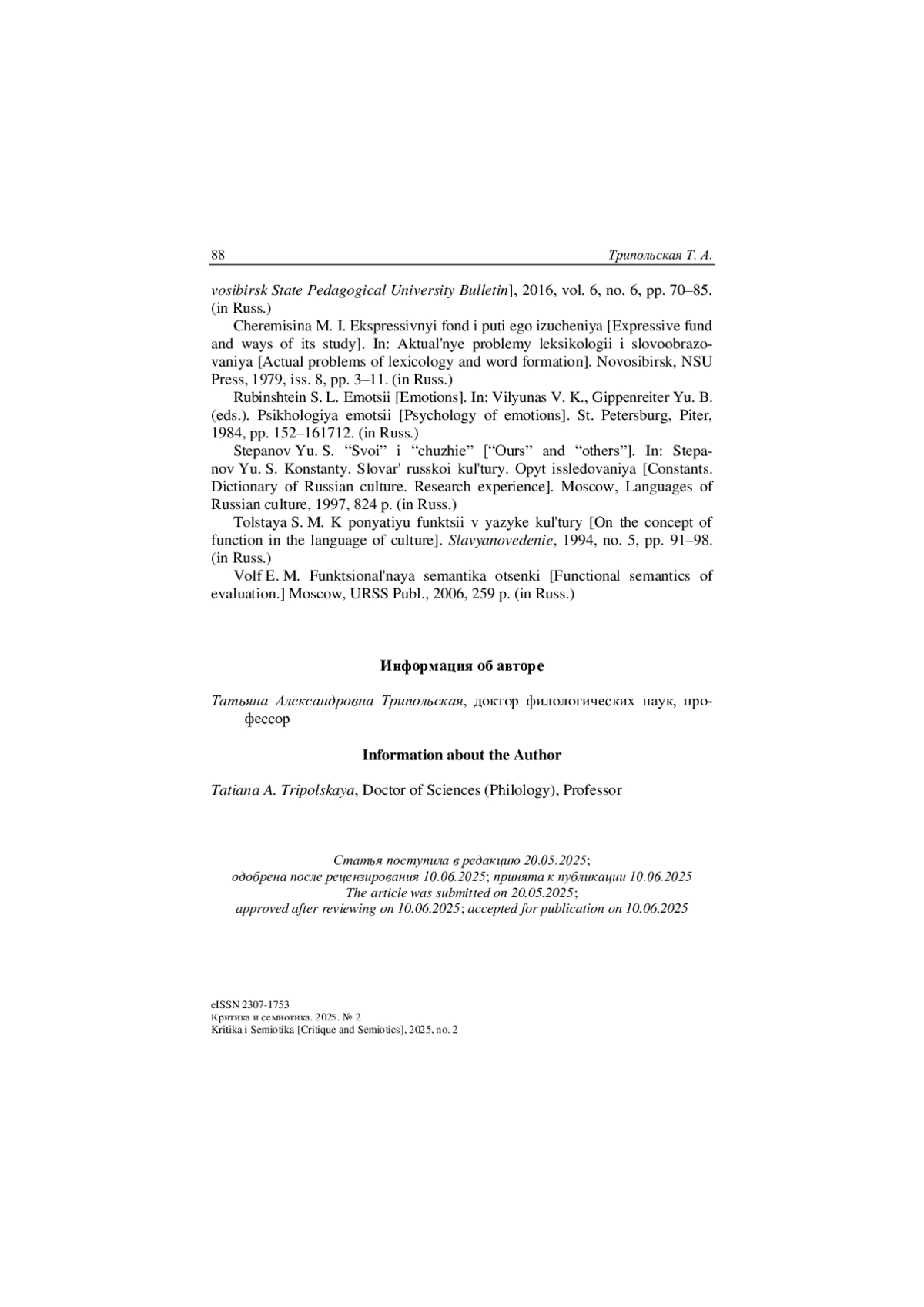 - Толстая С. М. К понятию функции в языке культуры // Славяноведе-ние. 1994. № 5. С. 91–98. Черемисина М. И. Экспрессивный фонд и пути его изучения // Акту-альные проблемы лексикологии и словообразования. Новосибирск, 1979. Вып. 8. С. 3–11.