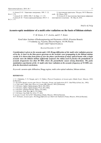 V. M. Kotov, S. V. Averin, and E. V. Kotov Acousto-optic modulator of a multi color radiation on the basis of lithium niobate 74
