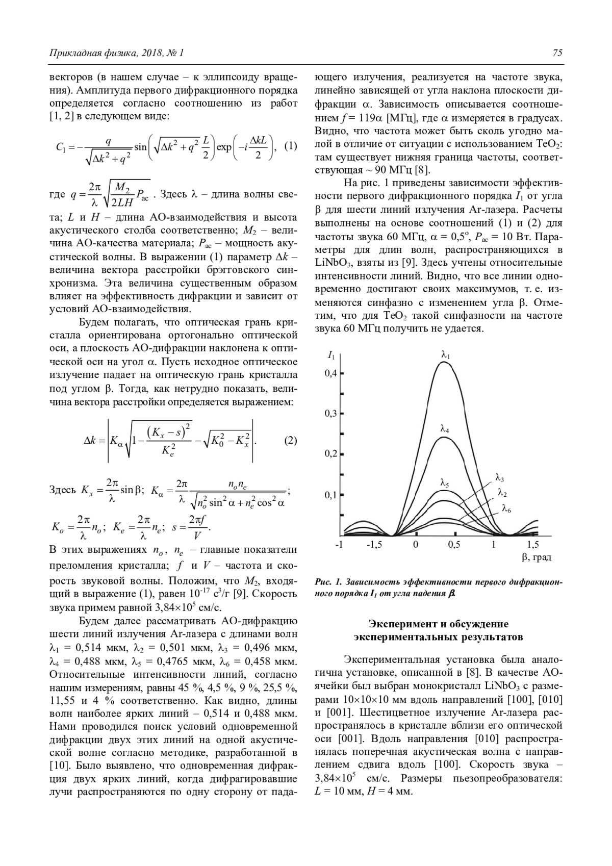 Котов В. М., Аверин С. В., Котов Е. В. Акустооптический модулятор многоцветного излучения на основе ниобата лития 74