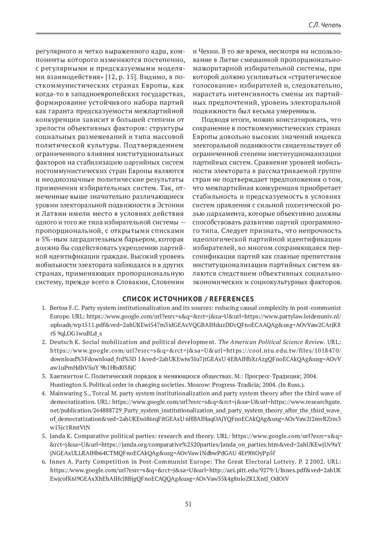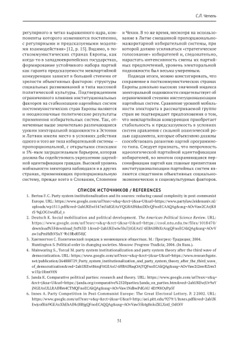 1. Bertoa F. C. Party system institutionalization and its sources: reducing causal complexity in post-communist Europe. URL: https://www.google.com/url?esrc=s&q=&rct=j&sa=U&url=https://www.partylaw.leidenuniv.nl/uploads/wp1511.pdf&ved=2ahUKEwi547m3idGEAxVQGBAIHduzDDcQFnoECAAQAg&usg=AOvVaw2CArjK8rS9qLOG1wuBLd_s