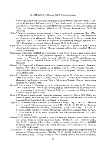 21. Хабибулина А. З., Давлетшина А. А. Образы небесных светил в русской и татарской народной лирической поэзии // Филология и культура. 2017. № 1 (47). С. 211-217.