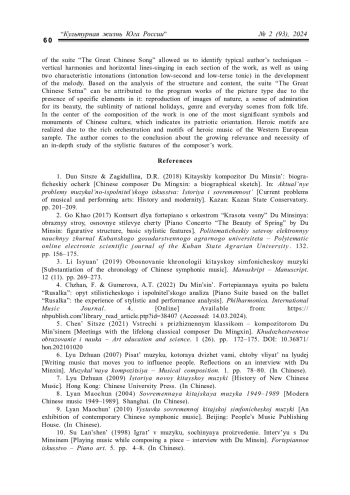 2. Го Хао. Концерт для фортепиано с оркестром “Красота весны” Ду Минсиня: образный строй, основные стилевые черты // Политематический сетевой электронный научный журнал Кубанского государственного аграрного университета. 2017. № 132. С. 156-175. EDN: ZTTBEL