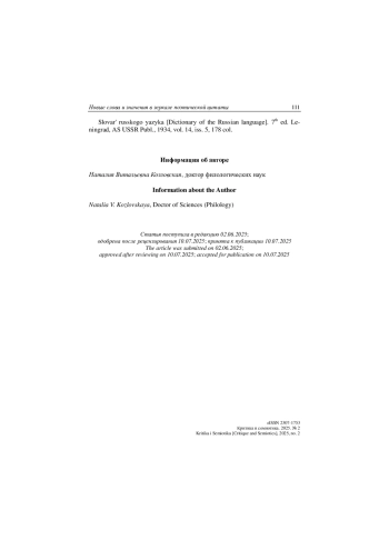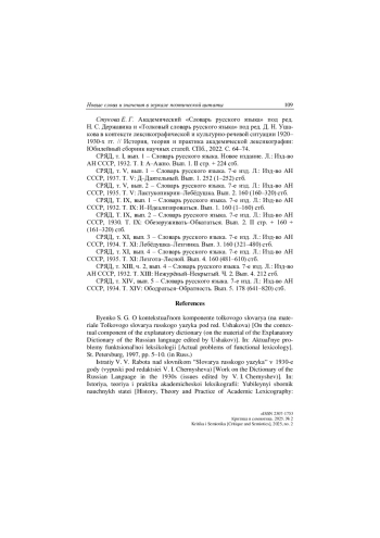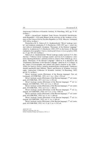 4. Приемышева М. Н., Стукова Е. Г. Академический “Словарь русского языка” под редакцией академика Н. С. Державина (1929-1937 гг.) в истории русской толковой лексикографии // Вопросы лексикографии. 2020. № 17. С. 195-212. DOI: 10.17223/22274200/17/10