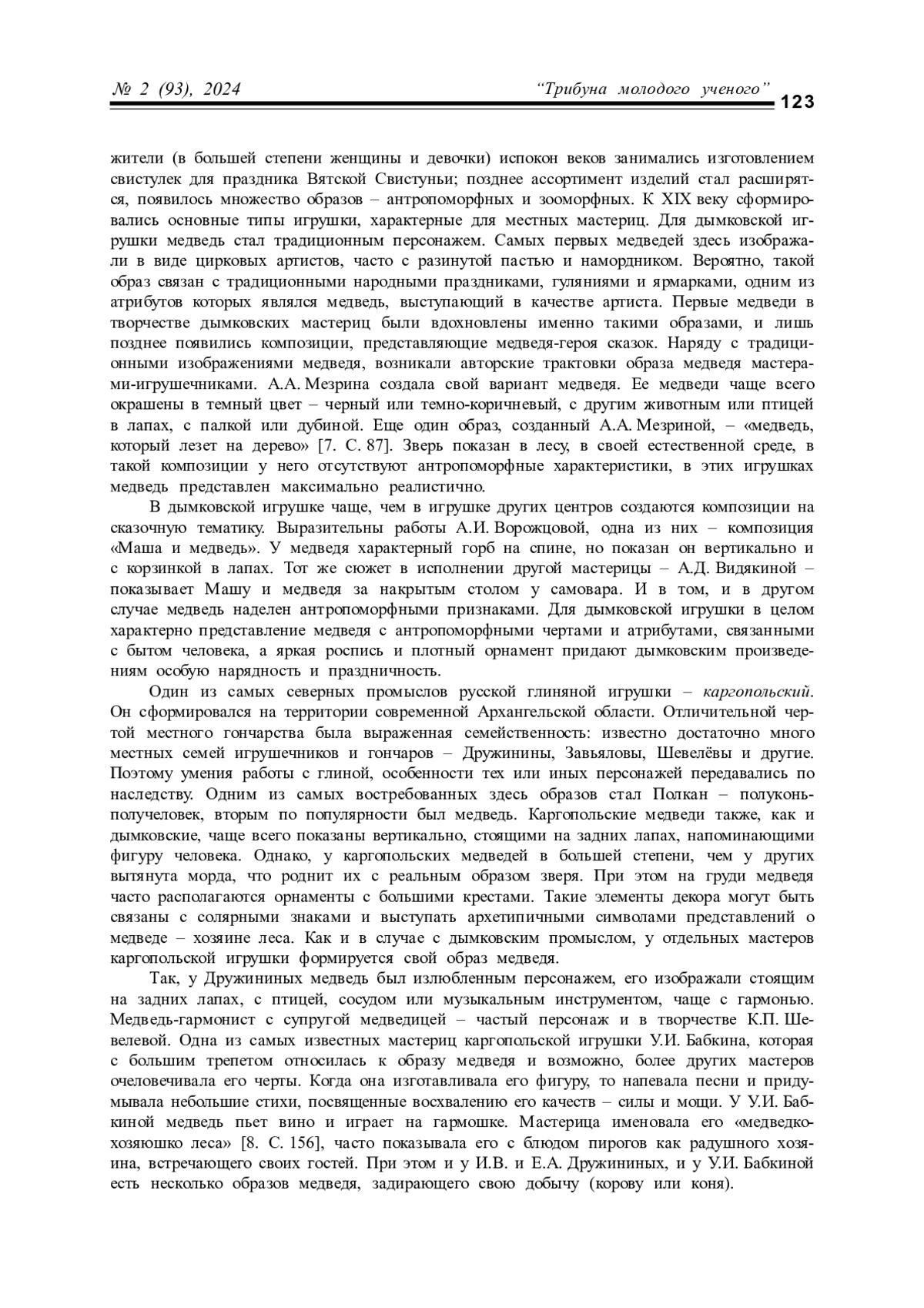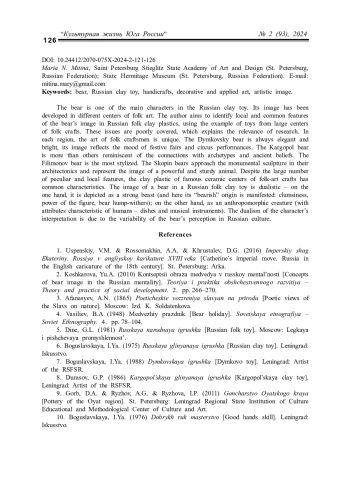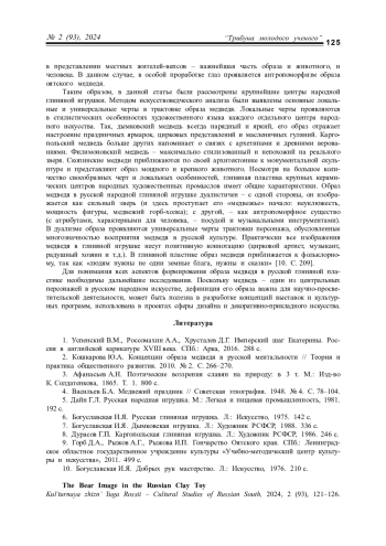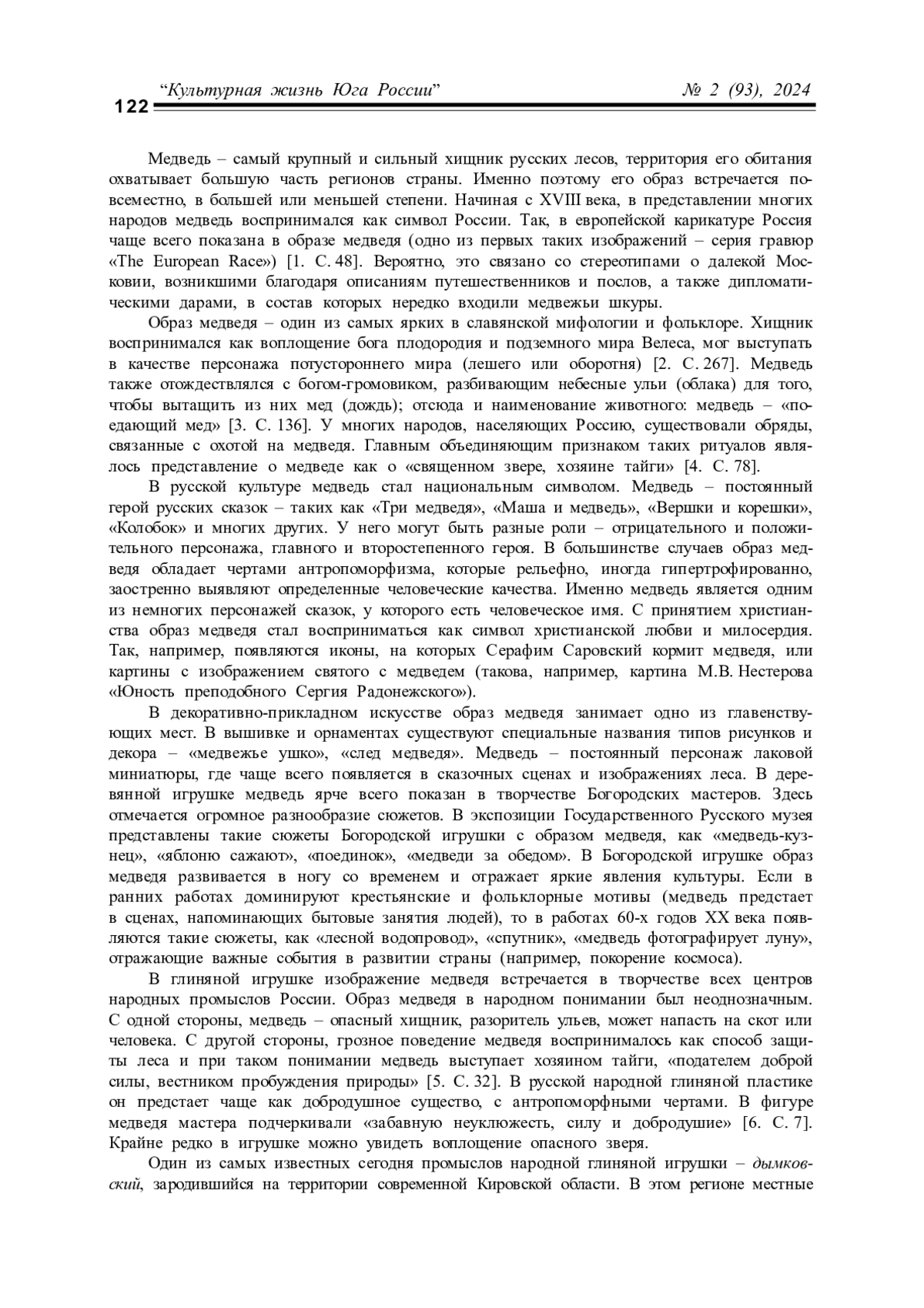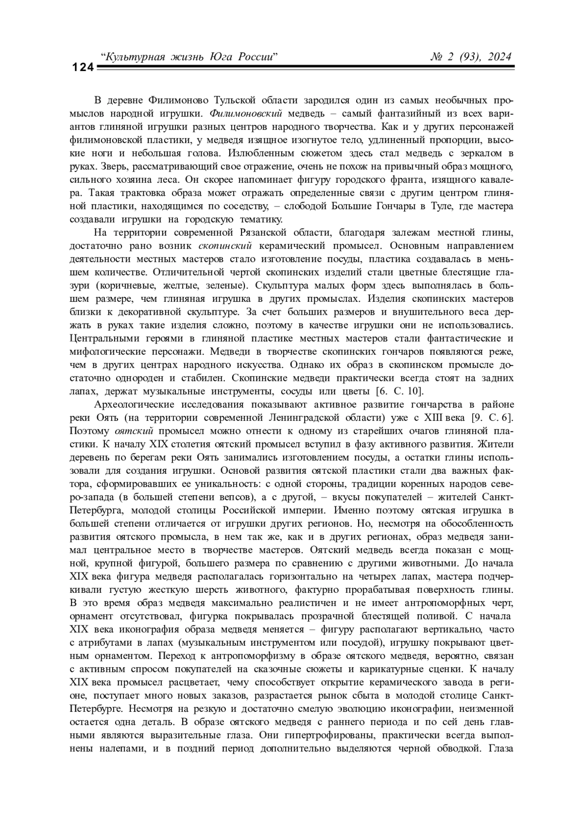 МИТИНА М. Н. ОБРАЗ МЕДВЕДЯ В РУССКОЙ ГЛИНЯНОЙ ИГРУШКЕ // КУЛЬТУРНАЯ ЖИЗНЬ ЮГА РОССИИ. 2024. № 2 (93)