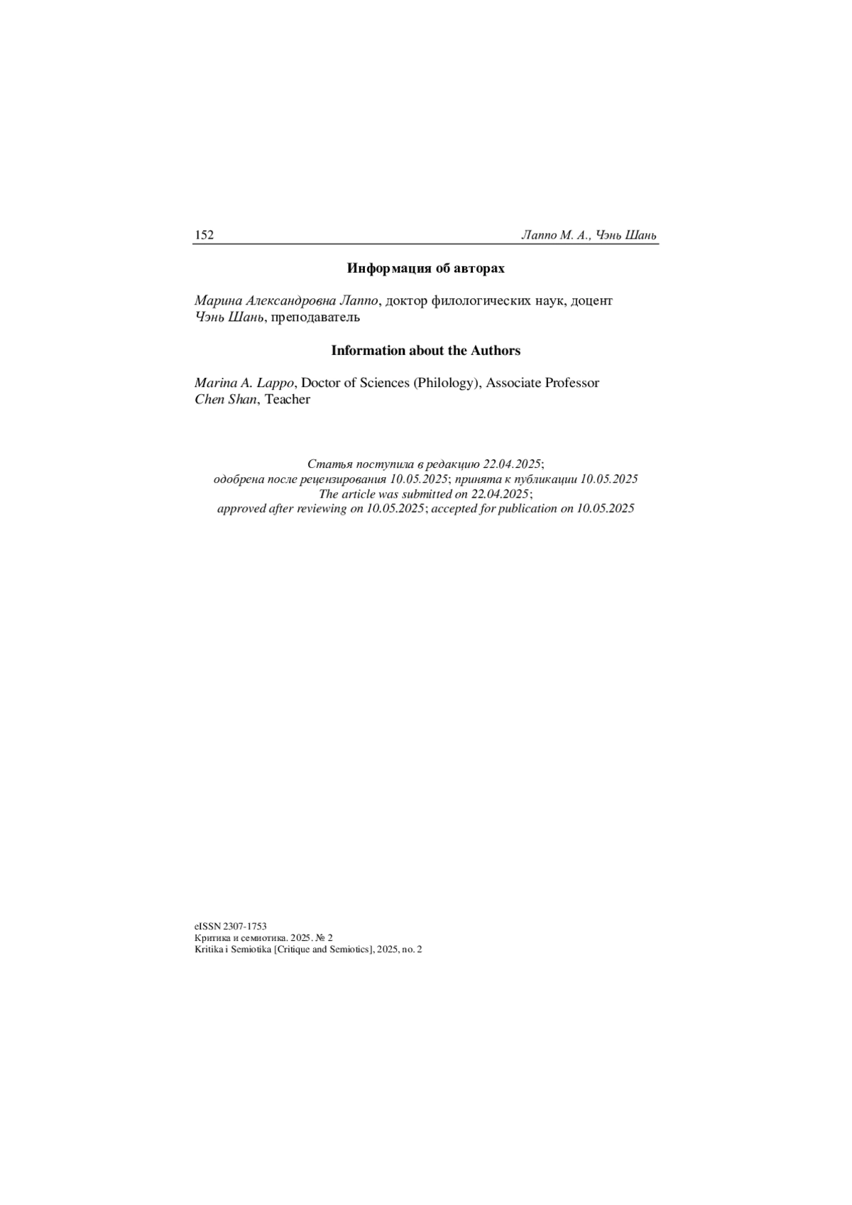20. Чэнь Ш. Языковая личность российского актера в зеркале самопрезентации (на фоне языковой личности китайского актера) // Филология: научные исследования. 2025. № 4. С. 196-208.