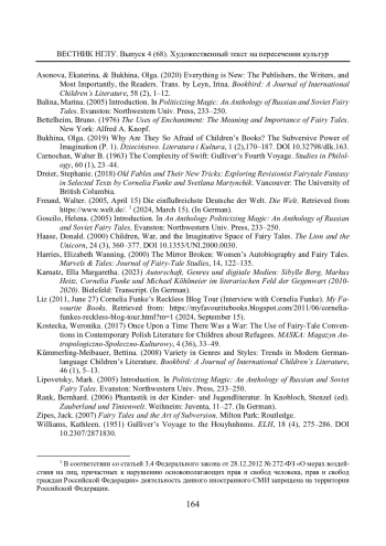 2. Губайдуллина А. Н. “Для бывших детей или будущих родителей?” (К проблеме двойной адресации современной детской книги) // Антропологическая психология в XXI веке: проблемы и перспективы: Сборник материалов V Сибирского психологического форума, 3-5 октября 2013 г. Томск: Издательский Дом Томского государственного университета, 2013. С. 69-72. EDN: SPMPXV