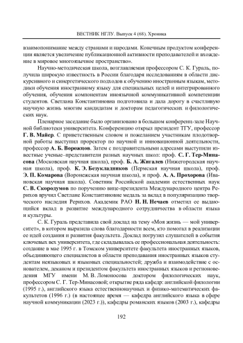 С 14 по 17 октября 2024 года один из старейших городов Сибири Томск принимал участников XXXIV Международной научной конференции «Язык и культура», организованной при поддержке ректора Национального исследовательского Томского государственного университета (ТГУ), доктора психол. наук, профессора, действительного члена РАО, Эдуарда Владимировича Галажинского.