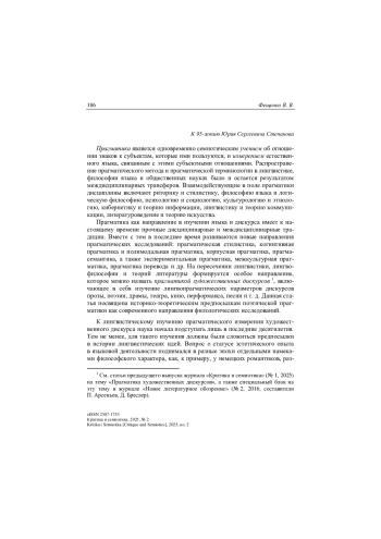 В дискурсе слова получают актуальный смысл, иногда очень далекий от буквального и радикально отличный от суммы внеконтекстных значений лексических единиц. Поэтому прагматическое исследование выходит за рамки стандартных семантики, лексикологии и грамматики. Огромный вклад в становление лингвистической прагматики как научной дисциплины сделал выдающийся российский филолог Юрий Сергеевич Степанов (1930–2012). Его идеи, связанные с индивидуальными чертами и эпистемическими основами дискурса, опередили свое время и получили широкое распространение в современной теории языка, в философии языка, в контрастивном анализе и в практических разработках в области «прагматической инженерии».
