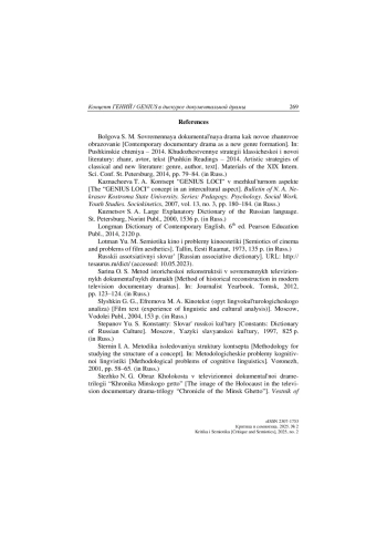 9. Стежко Н. Г. Образ Холокоста в телевизионной документальной драме-трилогии “Хроника Минского гетто” // Вестник Санкт-Петербург. гос. ун-та. Серия: Искусствоведение. 2021. Т. 11, № 1. С. 56-68. 10.21638/ spbu15.2021.104. DOI: 10.21638/spbu15.2021.104