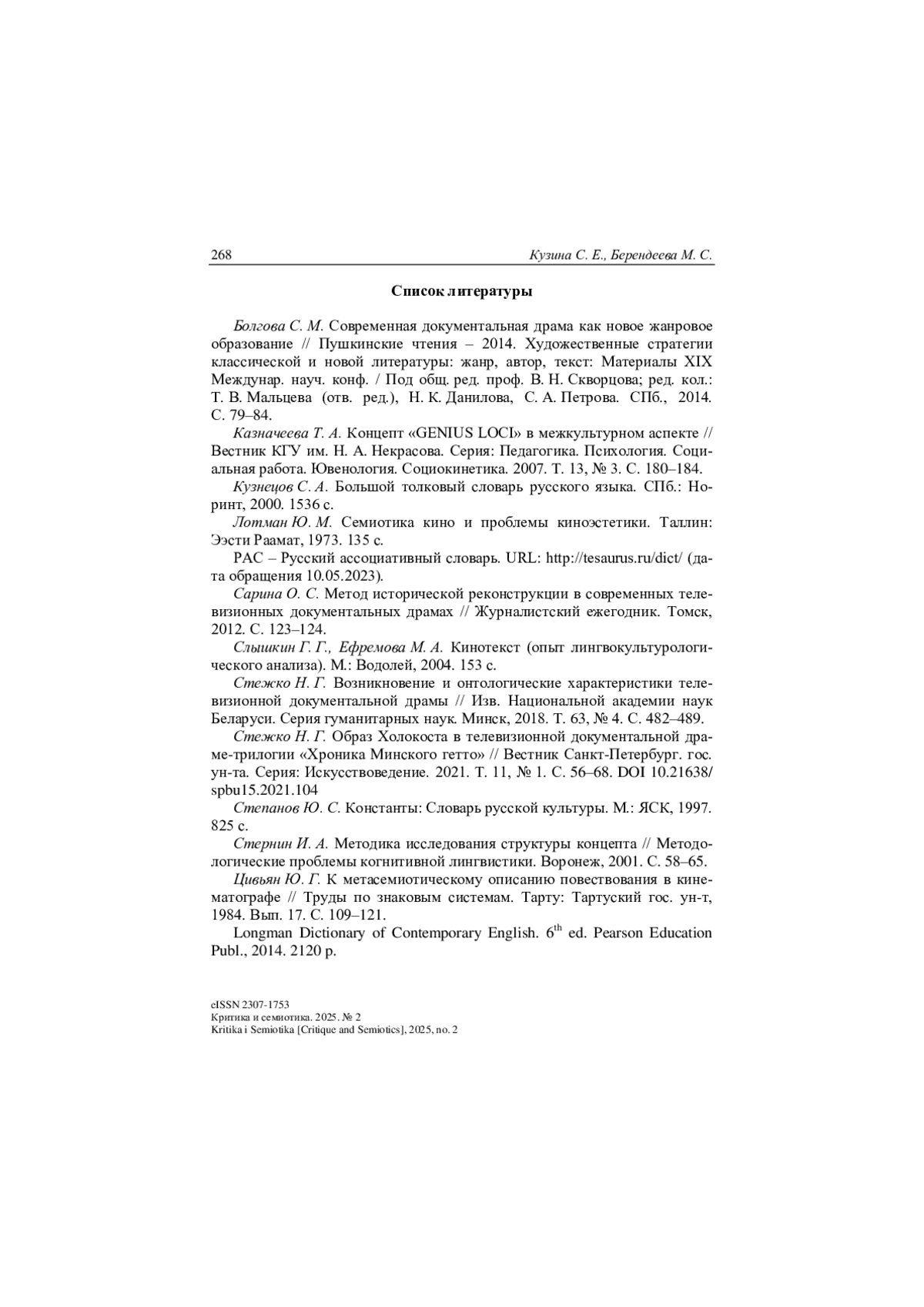 7. Слышкин Г. Г., Ефремова М. А. Кинотекст (опыт лингвокультурологического анализа). М.: Водолей, 2004. 153 с.