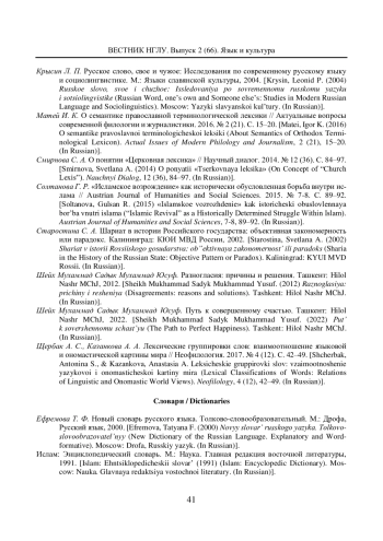 13. Зубайдуллаев И. А. Лексико-тематическая группа “Рамазан” в семантическом и функциональном аспектах // Вестник Башкирск. ун-та. 2021. Т. 26. № 4. С. 1111-1116. EDN: RZJSIX