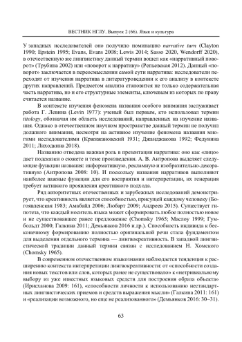 15. Репьевская М. В. Подходы к изучению нарратива // Вестник ЮУрГУ. Серия: Лингвистика. 2012. № 25. С. 136-143. EDN: PBNDUH