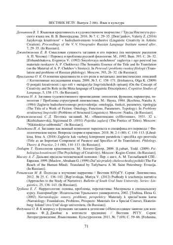 7. Демьянков В. З. Языковая креативность в художественном творчестве // Труды Института русского языка им. В. В. Виноградова. 2016. № 7. С. 29-35. EDN: WHWQJN