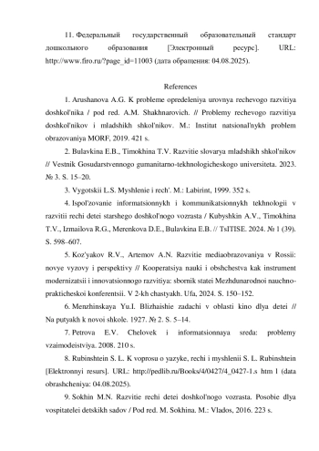 11. Федеральный государственный образовательный стандарт дошкольного образования [Электронный ресурс]. URL: http://www.firo.ru/?page_id=11003(датаобращения:04.08.2025).