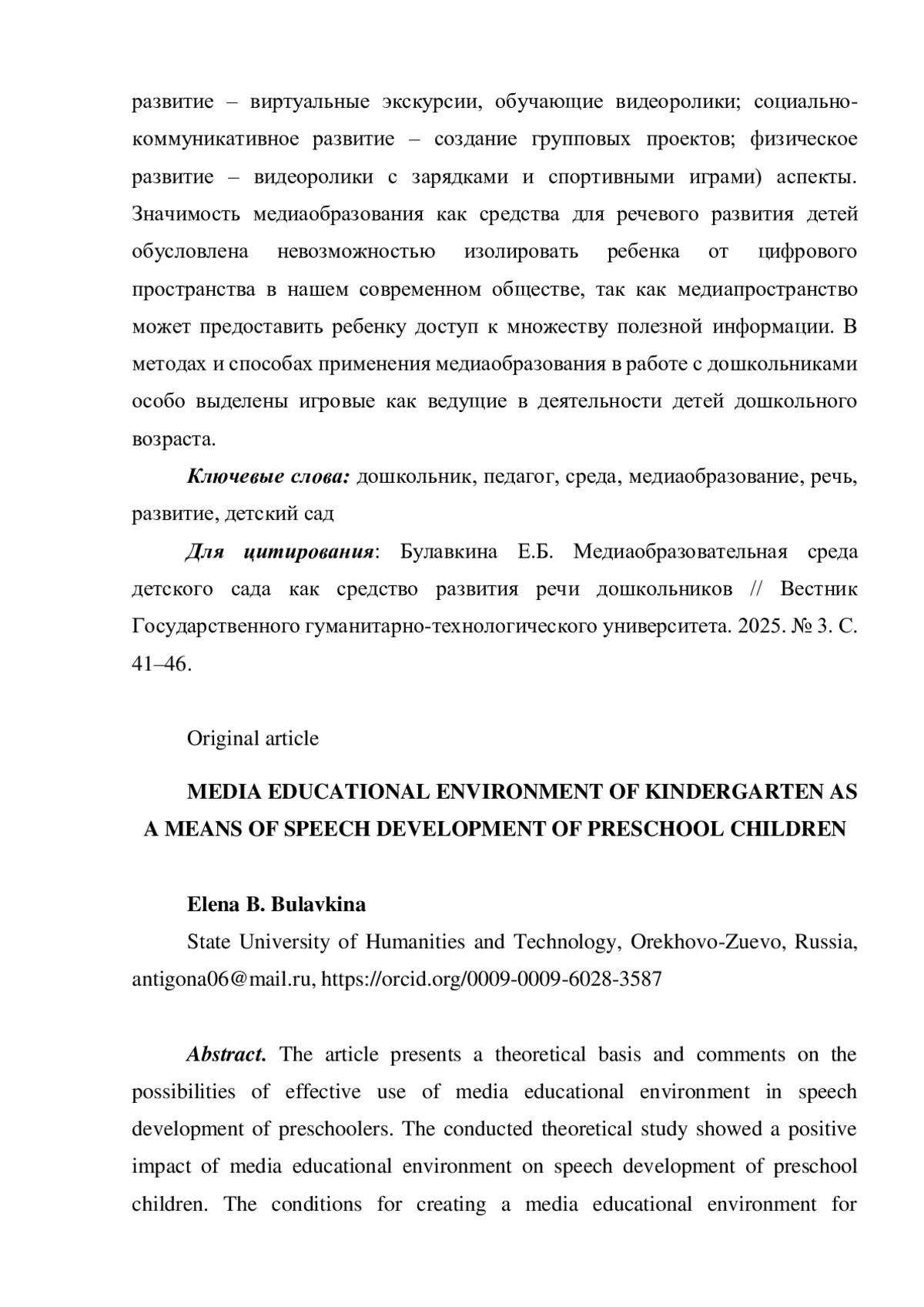 4. Использование информационных и коммуникационных технологий в развитии речи детей старшего дошкольного возраста / Кубышкин А.В., Тимохина Т.В., Измайлова Р.Г., Меренкова Д.Е., Булавкина Е.Б. // ЦИТИСЭ. 2024. № 1 (39). С. 598-607. EDN: HSKMBC