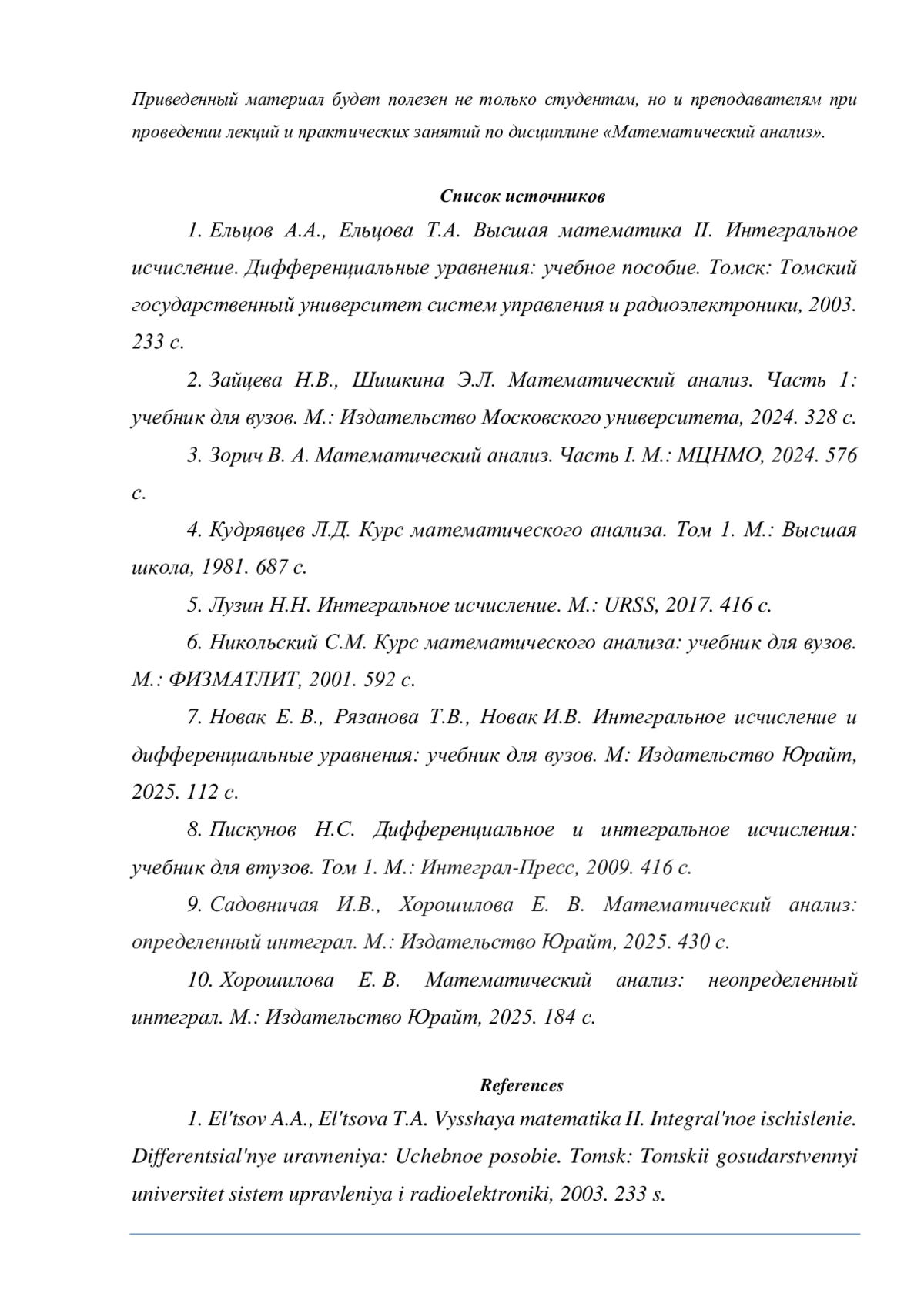 7. Новак Е. В., Рязанова Т.В., Новак И.В. Интегральное исчисление и дифференциальные уравнения: учебник для вузов. М: Издательство Юрайт, 2025. 112 с.