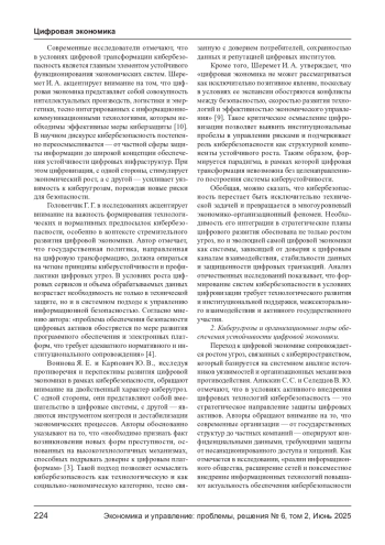 4. Головенчик Г. Г. Проблемы кибербезопасности в условиях цифровой трансформации экономики и общества // Экономика. Управление. Инновации. - 2018. - № 2(4). - С. 23-33. EDN: FQTOMA
