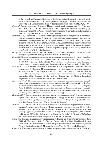 18. Серль Дж. Косвенные речевые акты // Новое в зарубежной лингвистике. Вып. XVII. М.: Прогресс, 1986b. C. 195-222.