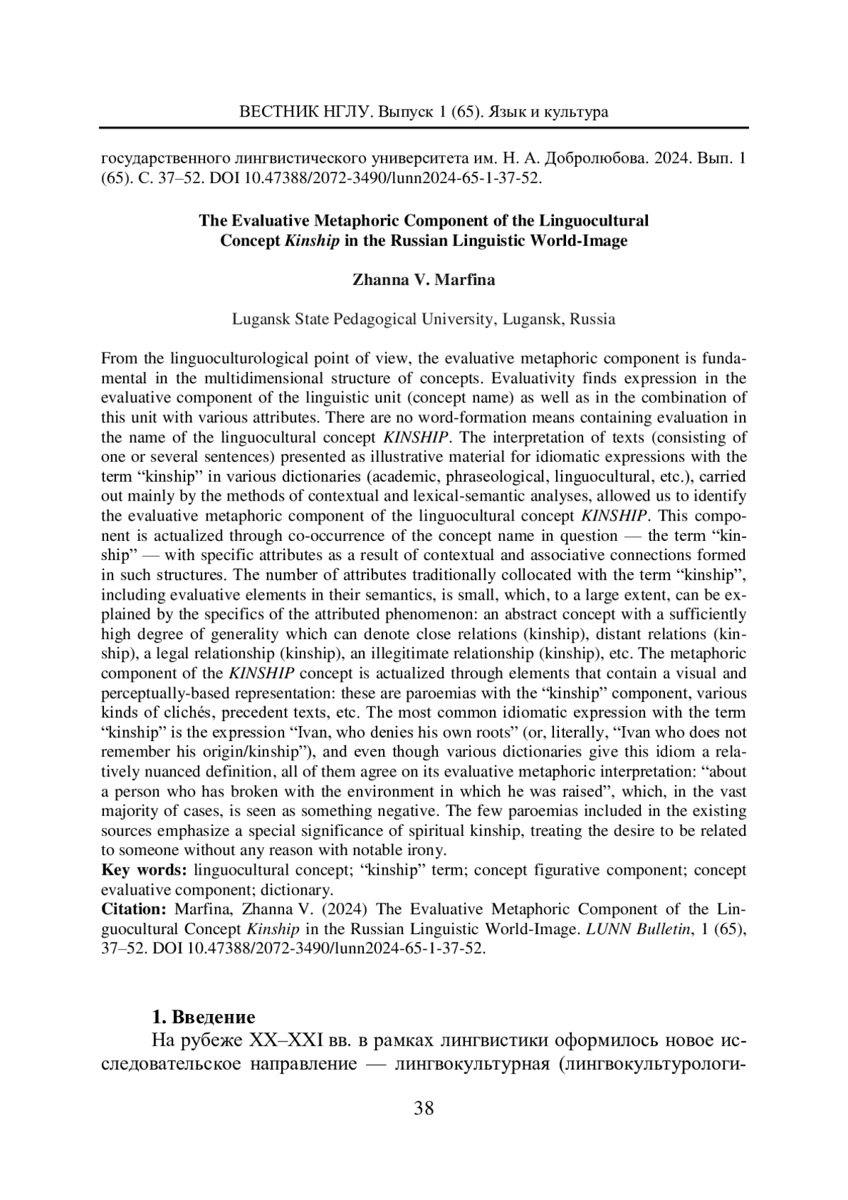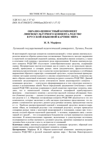 МАРФИНА Ж. В. ОБРАЗНО-ЦЕННОСТНЫЙ КОМПОНЕНТ ЛИНГВОКУЛЬТУРНОГО КОНЦЕПТА РОДСТВО В РУССКОЙ ЯЗЫКОВОЙ КАРТИНЕ МИРА // ВЕСТНИК НИЖЕГОРОДСКОГО ГОСУДАРСТВЕННОГО ЛИНГВИСТИЧЕСКОГО УНИВЕРСИТЕТА ИМ. Н. А. ДОБРОЛЮБОВА. 2024. № 65