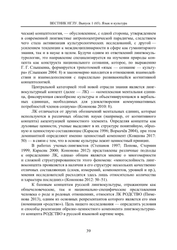 Ключевые фразы: ЛИНГВОКУЛЬТУРНЫЙ КОНЦЕПТ, номинация "родство", образный компонент концепта, ценностный компонент концепта, словарь