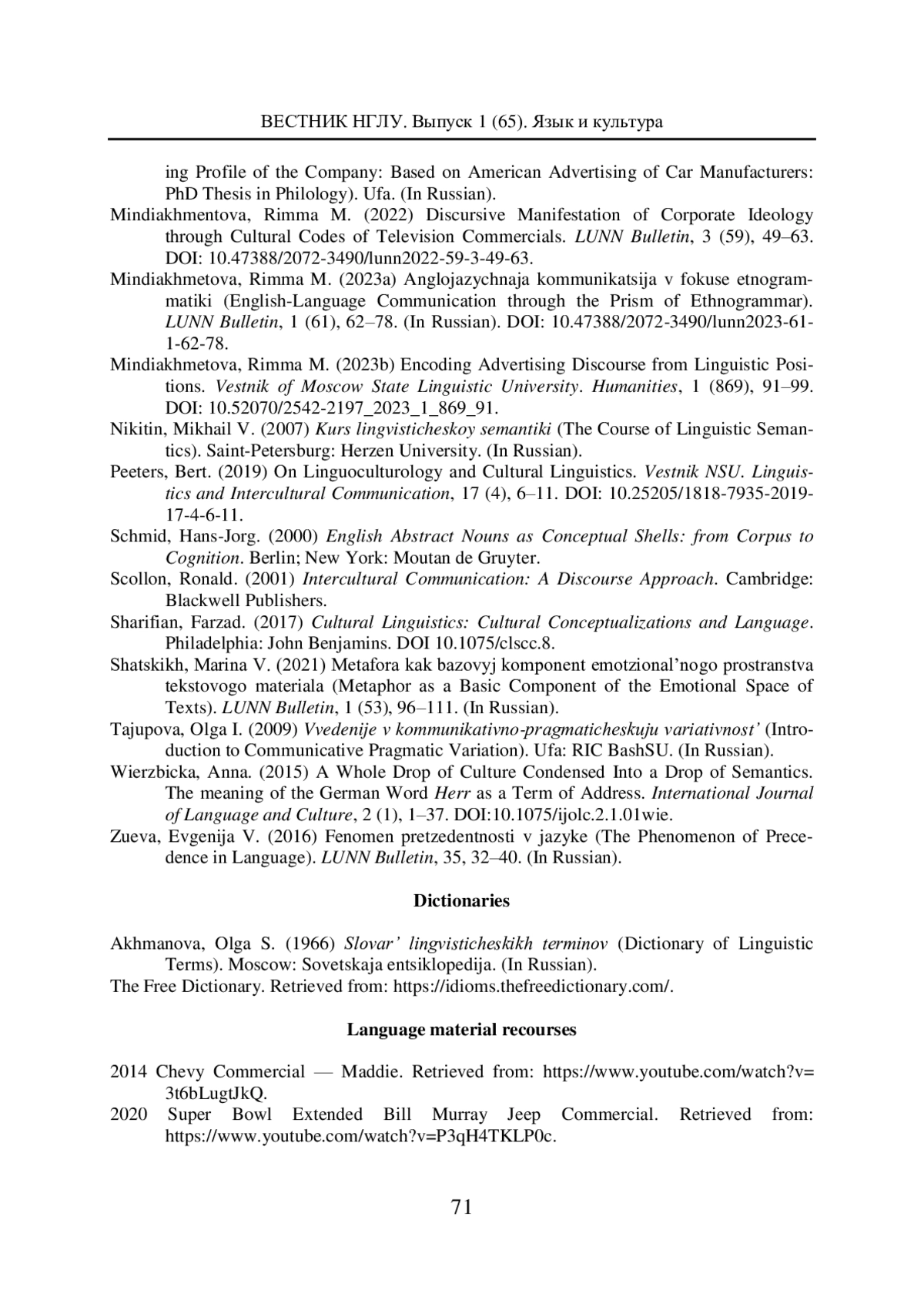 Журнал: ВЕСТНИК НИЖЕГОРОДСКОГО ГОСУДАРСТВЕННОГО ЛИНГВИСТИЧЕСКОГО УНИВЕРСИТЕТА ИМ. Н. А. ДОБРОЛЮБОВА